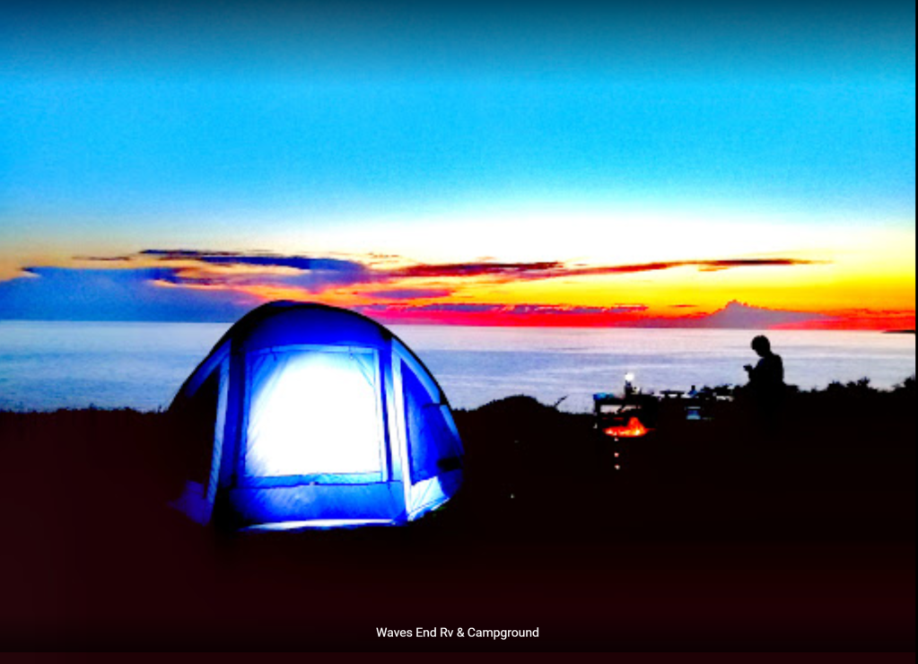 Our guests fishing at the Waves End Beach, others relaxing and enjoying the beautiful sunsets. Our sites are spacious giving our guests privacy and room to spread out to set up camp.